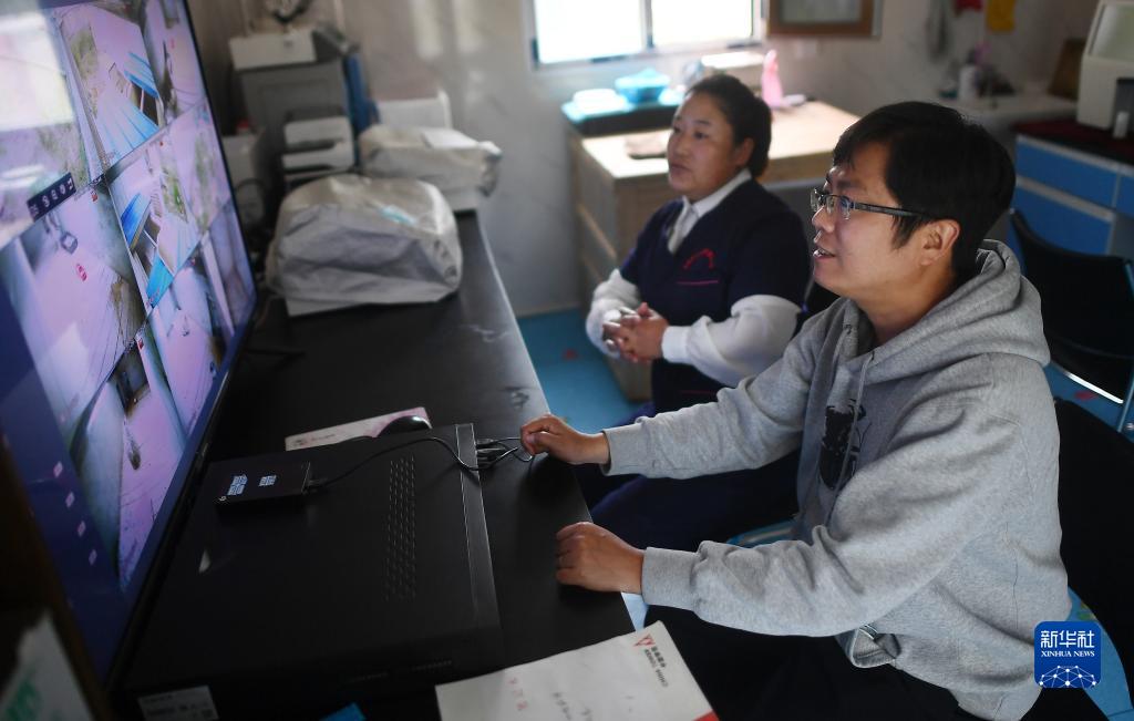 9月18日,在青海野生動(dòng)物救護(hù)繁育中心,工作人員查看監(jiān)控,了解荒漠貓的進(jìn)食情況。