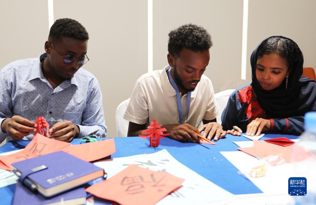 當(dāng)日,在吉布提非洲青年創(chuàng)新創(chuàng)業(yè)中心,吉布提孔子學(xué)院老師為來自吉布提、埃賽俄比亞、肯尼亞、烏干達(dá)的非洲創(chuàng)業(yè)青年上了一堂生動的中國文化課。風(fēng)俗、書法、剪紙等中國文化引起了學(xué)員們的廣泛興趣。