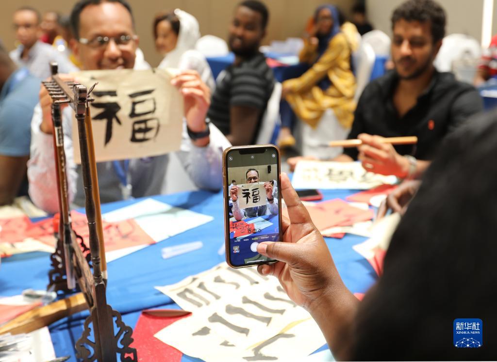 當日,在吉布提非洲青年創(chuàng)新創(chuàng)業(yè)中心,吉布提孔子學(xué)院老師為來自吉布提、埃賽俄比亞、肯尼亞、烏干達的非洲創(chuàng)業(yè)青年上了一堂生動的中國文化課。風俗、書法、剪紙等中國文化引起了學(xué)員們的廣泛興趣。