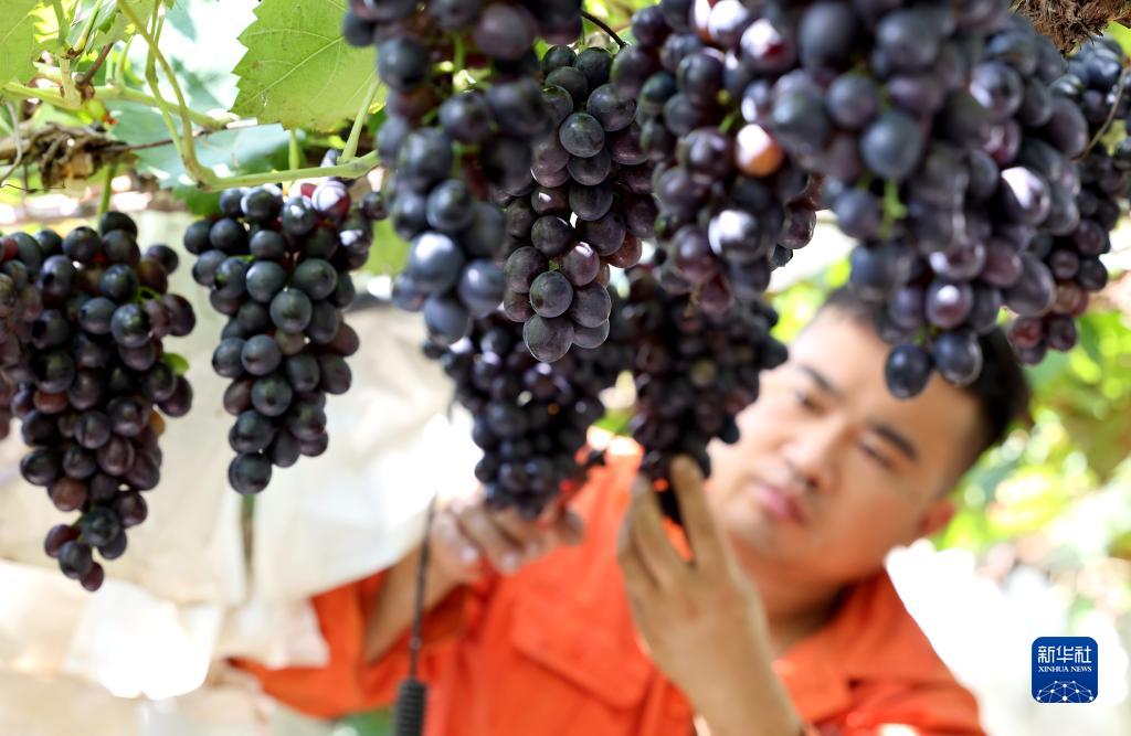 9月17日,山東省棗莊市齊村鎮(zhèn)前良村農(nóng)民在果園采摘葡萄。