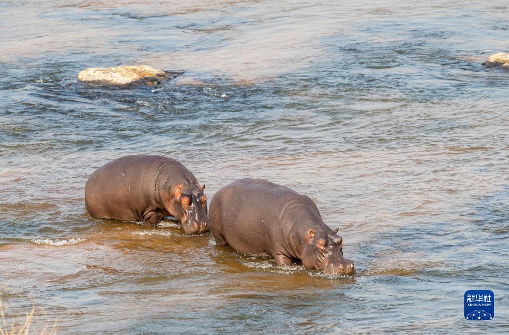 這是9月18日在南非克魯格國家公園內拍攝的河馬。