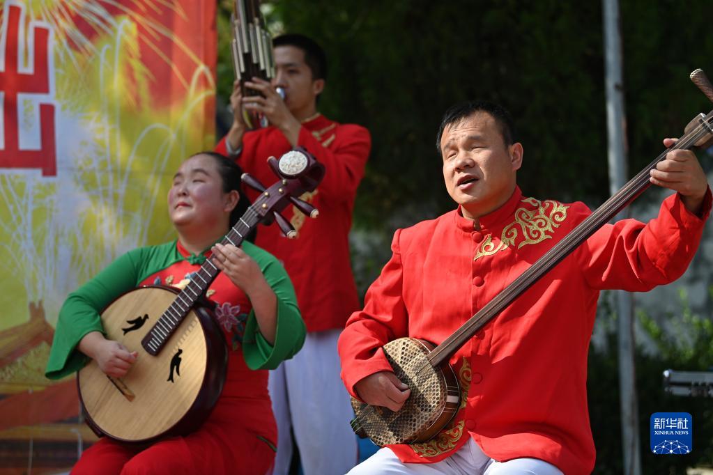 陵川縣盲人曲藝宣傳隊在陵川縣楊村鎮北山村演出(9月14日攝)。