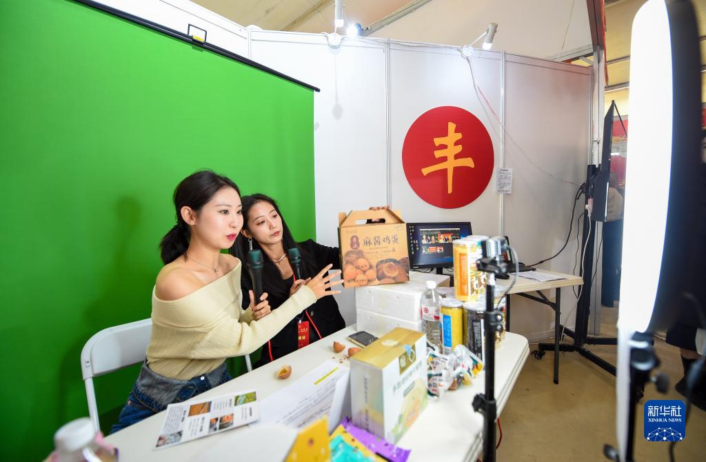9月19日,主播在2022年內蒙古“中國農民豐收節”主會場慶祝活動上直播帶貨。