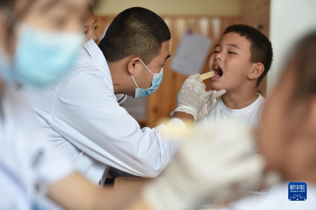9月19日,河北省石家莊市井陘縣醫院口腔科醫生為小朋友進行牙齒檢查。