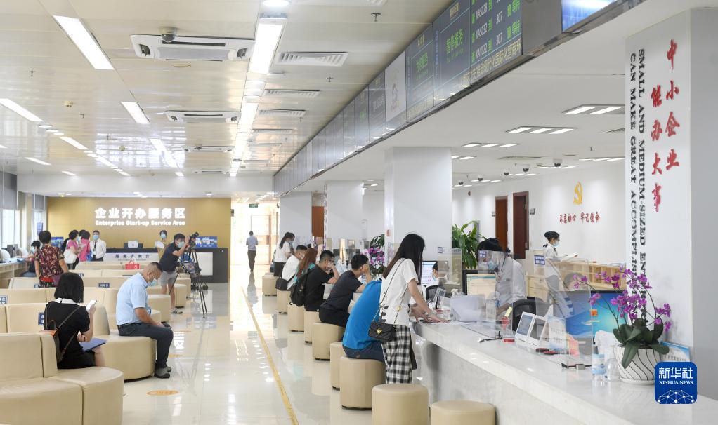 市民在廣州市開發區政務服務中心企業開辦服務區辦理業務(2022年9月15日攝)。新華社記者 盧漢欣 攝