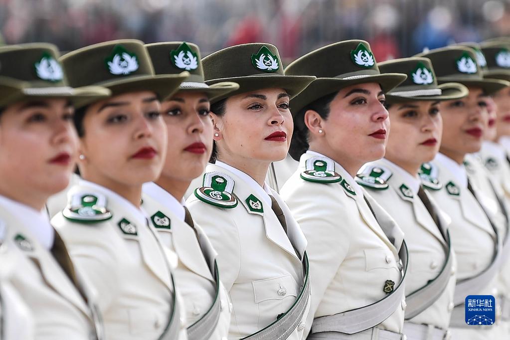 當日,一年一度的智利陸軍節閱兵式在首都圣地亞哥奧伊金斯公園舉行。智利陸海空三軍和警察部隊8200多人參加了閱兵式。