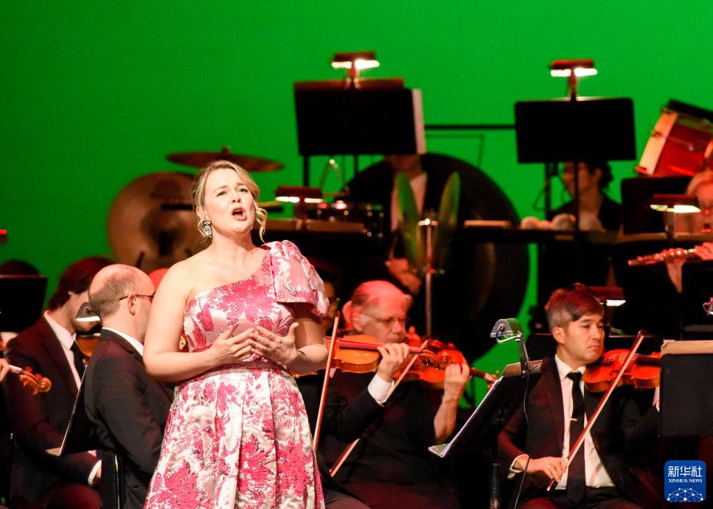 9月19日,女高音歌唱家喬安娜·富特在新西蘭惠靈頓舉行的“中華風(fēng)韻”交響音樂(lè)會(huì)上演唱。