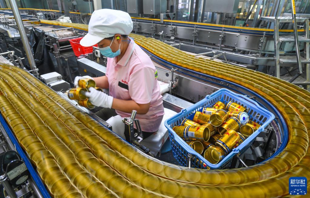質檢員在三水“水都基地”的紅牛維他命飲料公司灌裝生產線檢查罐體質量(9月17日攝)。