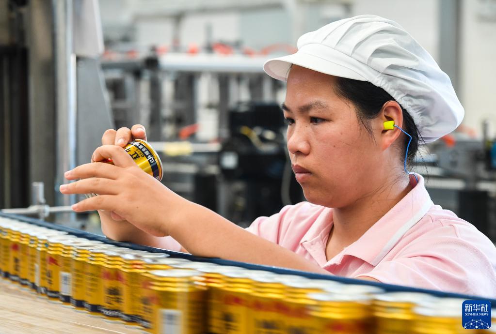 質(zhì)檢員在三水“水都基地”的紅牛維他命飲料公司生產(chǎn)線檢查產(chǎn)品外觀(9月17日攝)。
