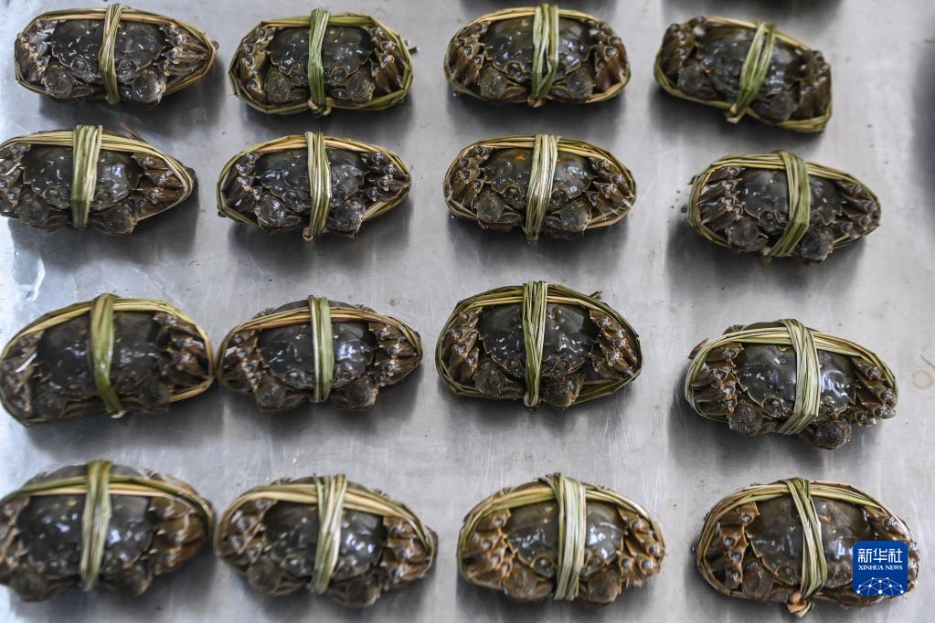 9月20日,織里鎮(zhèn)喬溇村的溇港人家太湖蟹生態(tài)養(yǎng)殖基地內,用稻草捆扎好的太湖蟹即將發(fā)往各地。