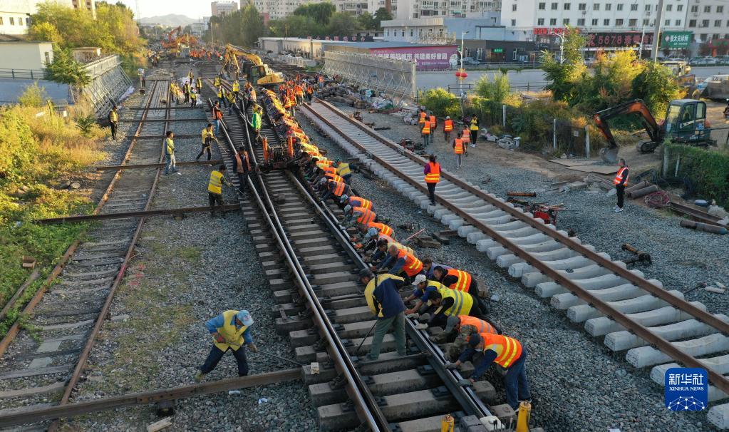 9月19日拍攝的遼寧朝陽南站站改封鎖施工現場(無人機照片)。