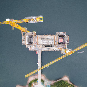 當日,官(莊)新(化)高速全線重點控制性工程馬路口資水特大橋主墩封頂,即將進入橋梁上構施工階段,為早日通車運行奠定了基礎。馬路口資水特大橋位于湖南省益陽市安化縣柘溪水庫內,全長1187米,主跨500米,其中水中主塔高202.4米。