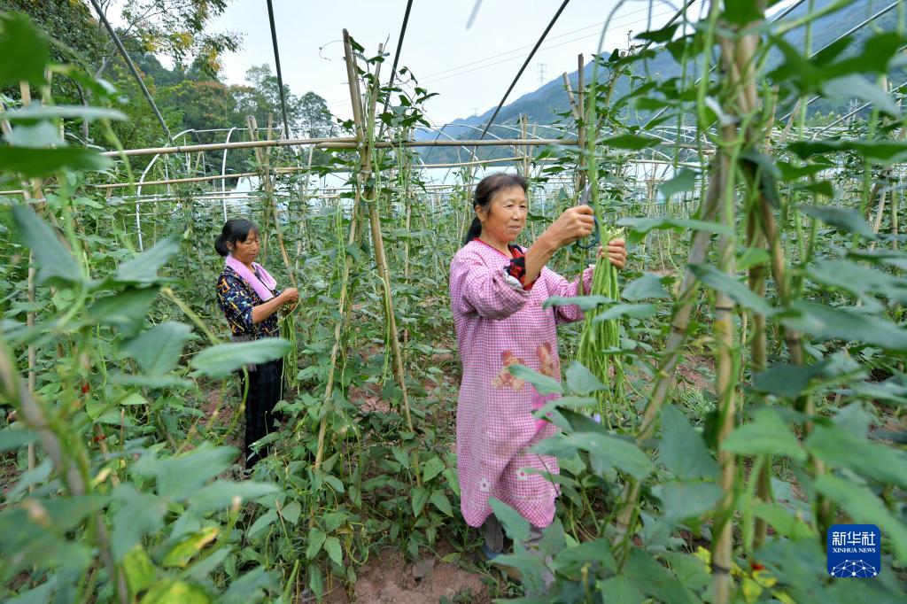 9月20日,宣恩縣萬寨鄉向家村的村民在采收豇豆。