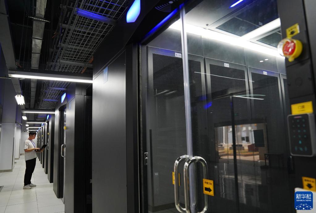 9月20日,在位于南昌經濟技術開發區的中國聯通智·云數據中心,工作人員檢查服務器運行情況。