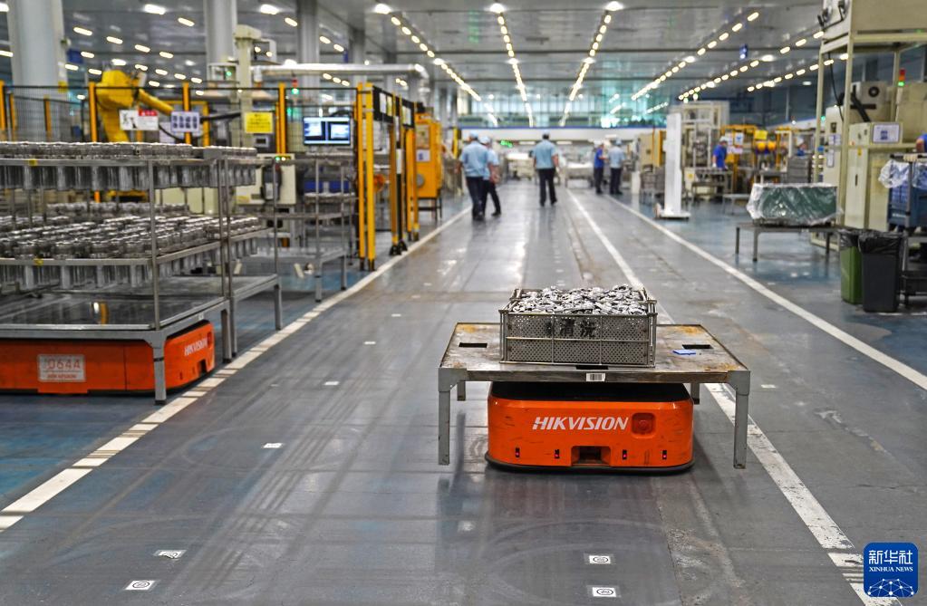 9月20日,南昌經濟技術開發區一家企業智能工廠內,智能物流小車在工作。