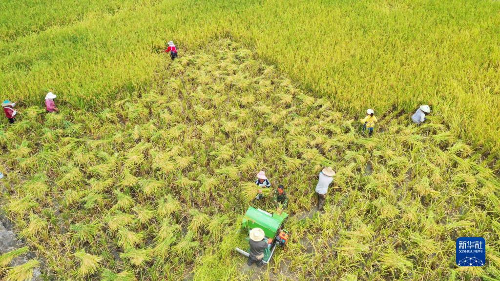 秋收時節,各地水稻陸續成熟,農民忙著開鐮收割,田間地頭稻谷飄香,一派喜人的豐收景象。
