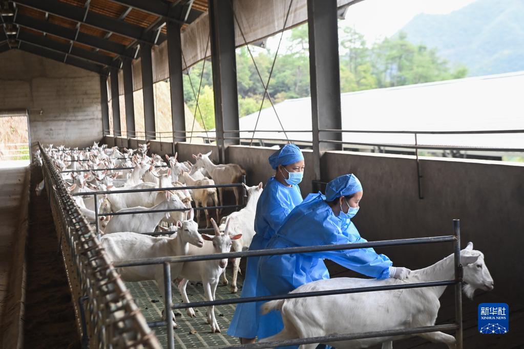 9月21日,在杭州市臨安區(qū)昌化鎮(zhèn)后營(yíng)村的牧羊谷,張東莉(左)與同事給新進(jìn)的羊采血。張東莉與丈夫共同創(chuàng)辦的牧羊谷羊場(chǎng)存欄湖羊和山羊2000多只,是集現(xiàn)代化養(yǎng)殖、旅游、餐飲于一體的新型畜牧企業(yè)。
