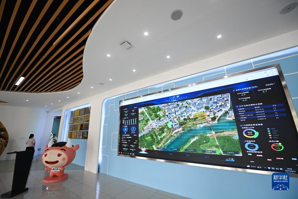9月21日拍攝的杭州市臨安區(qū)昌化鎮(zhèn)白牛村電商大樓農(nóng)創(chuàng)客中心的數(shù)字大屏。
