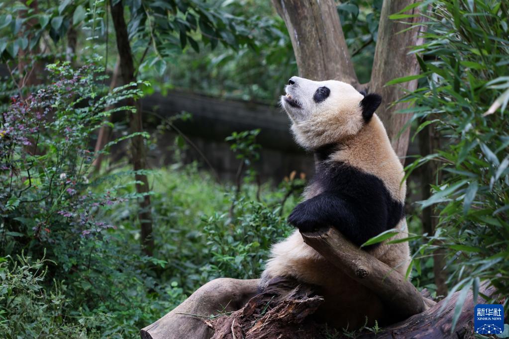 這是9月21日在成都大熊貓繁育研究基地內拍攝的大熊貓“和花”。