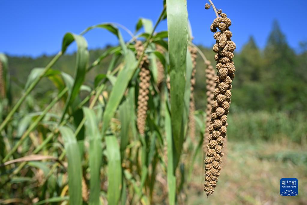 這是9月21日在天津市薊州區(qū)羅莊子鎮(zhèn)泥河村拍攝的成熟谷子。