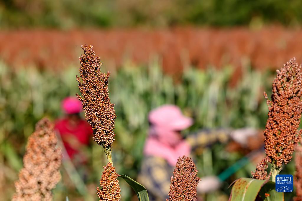 9月21日,浙江省杭州市淳安縣楓樹嶺鎮上江村村民在收獲紅高粱。