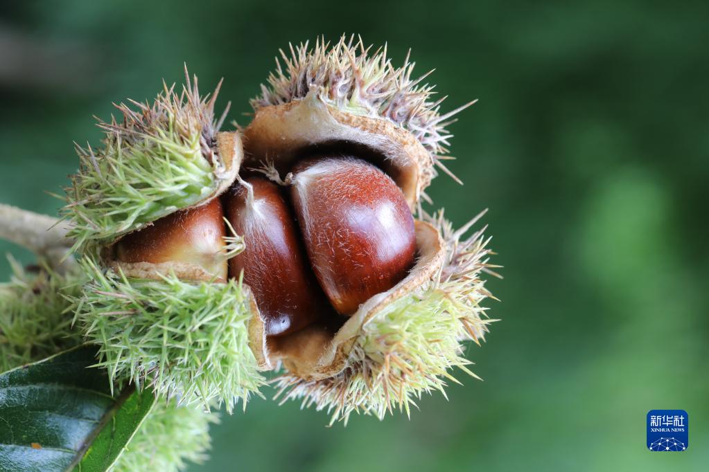 在云南騰沖市曲石鎮(zhèn)公平村拍攝的成熟的板栗(9月12日攝)。