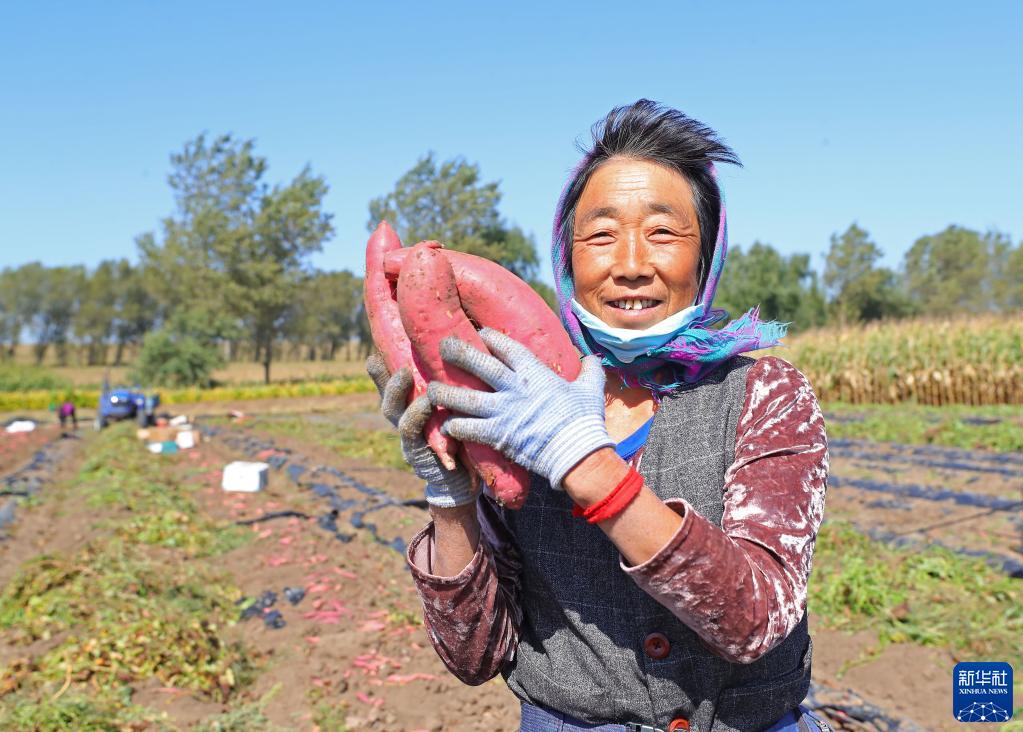 9月21日,在康平縣方家屯鎮(zhèn)十家子村,農(nóng)民展示收獲的紅薯。