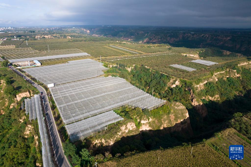 洛川縣舊縣鎮的蘋果林(9月20日攝,無人機照片)。