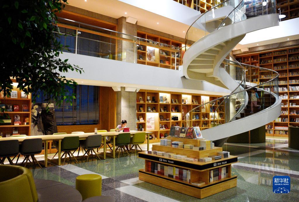 市民在西影“電影圈子”里的藝術(shù)書吧內(nèi)(9月12日攝)。