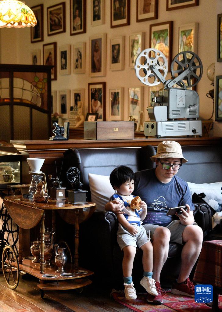 市民在西影“電影圈子”內的咖啡館休閑(9月11日攝)。