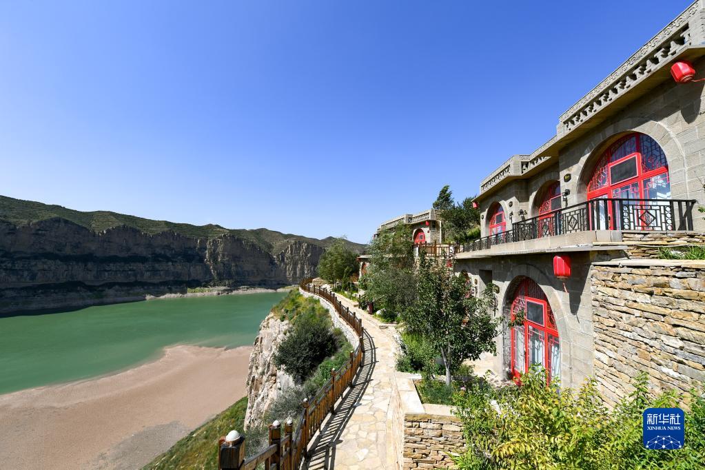 9月21日在鄂爾多斯市準(zhǔn)格爾旗拍攝的黃河沿岸風(fēng)光。
