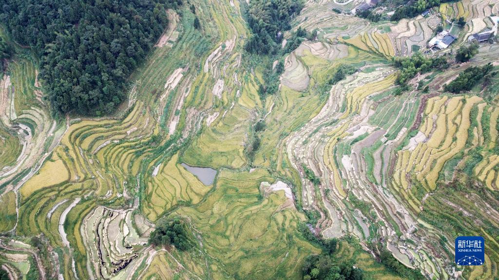 金秋時(shí)節(jié),湖南省婁底市新化縣紫鵲界梯田的水稻進(jìn)入成熟收割期。紫鵲界梯田是世界灌溉工程遺產(chǎn)和全國(guó)首批19個(gè)重要農(nóng)業(yè)文化遺產(chǎn)之一,梯田層層疊疊連綿起伏。