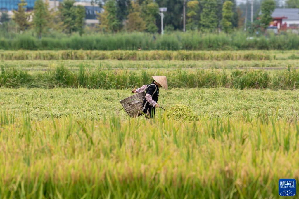 時值秋收,農業大省四川省各地農田里一片繁忙的收割景象。