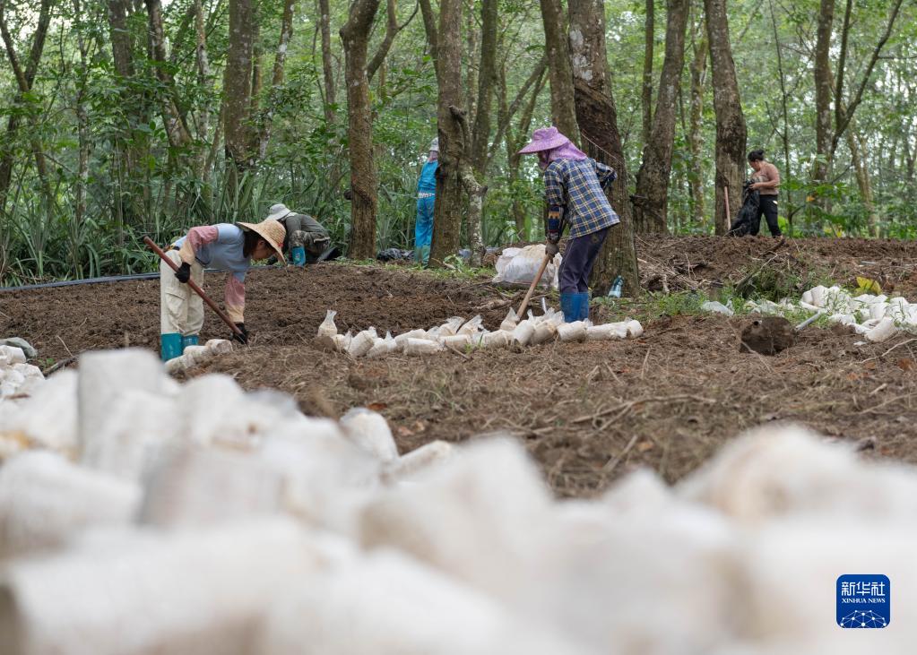 9月22日,在海南省白沙黎族自治縣青松鄉(xiāng)打松村,村民在種植虎奶菇。