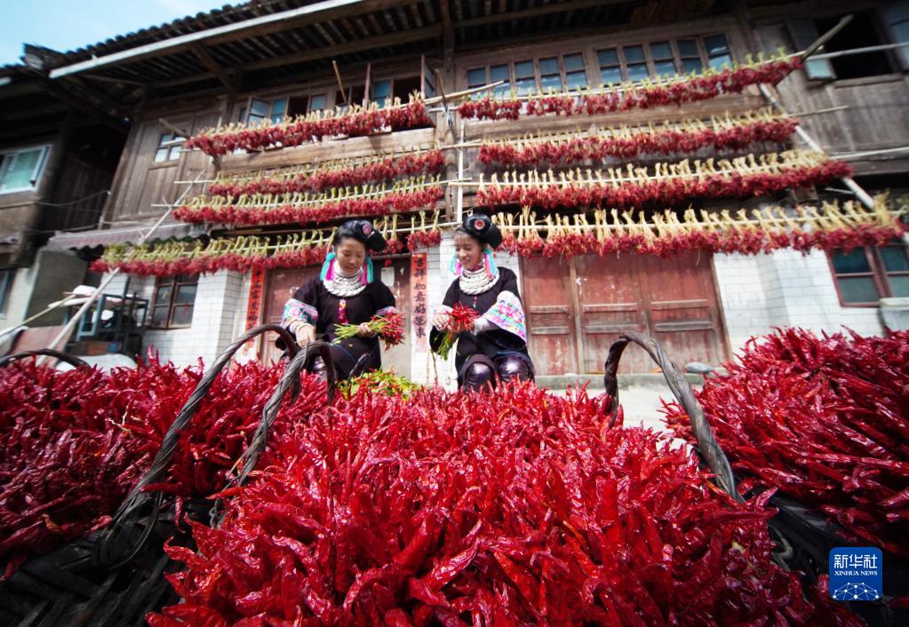 9月15日,貴州省黔東南苗族侗族自治州從江縣東朗鎮擺啊村村民在分揀辣椒。