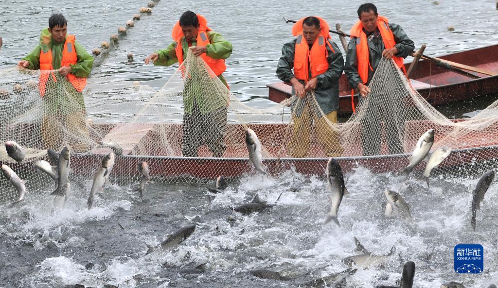 9月21日,在四川省南充市南部縣升鐘湖,漁民撒網捕魚。