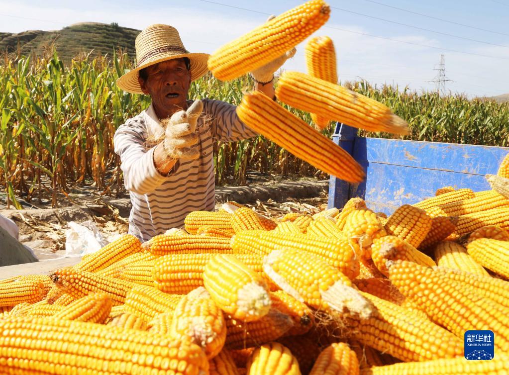 9月22日,在甘肅省定西市安定區西鞏驛鎮鏵尖村,村民將收獲的玉米裝車。