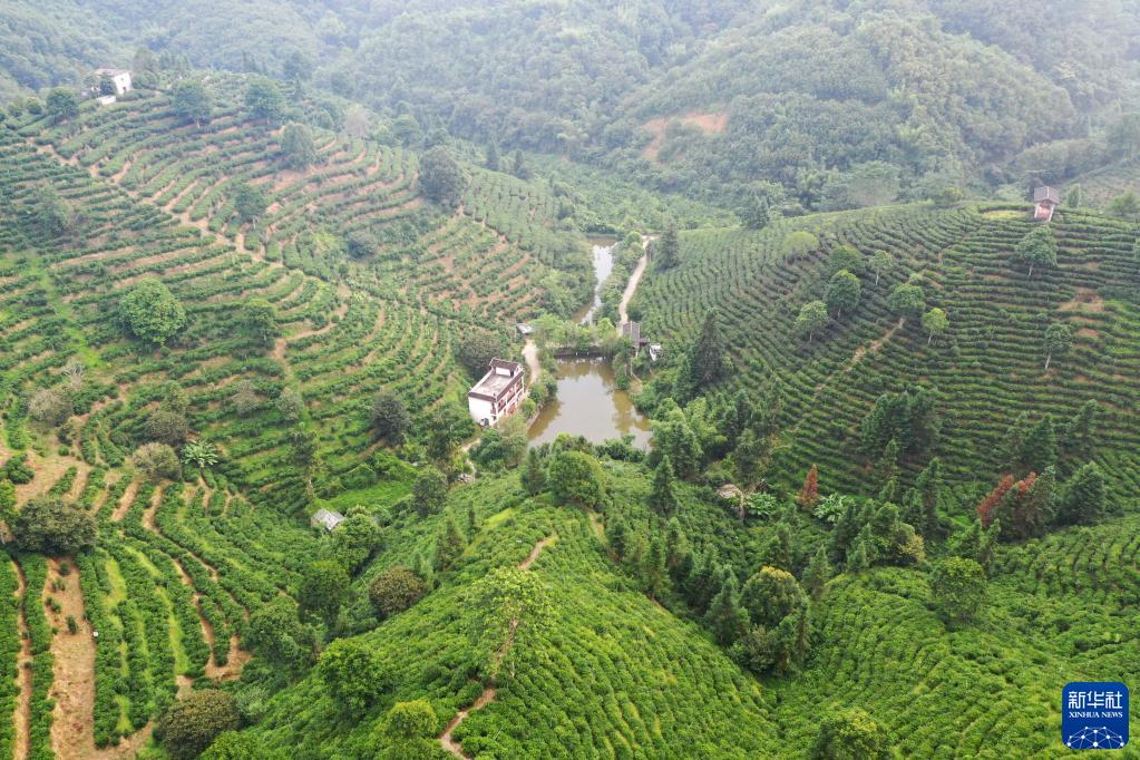 9月22日拍攝的廣西蒼梧縣六堡鎮大中村八集茶園(無人機照片)。