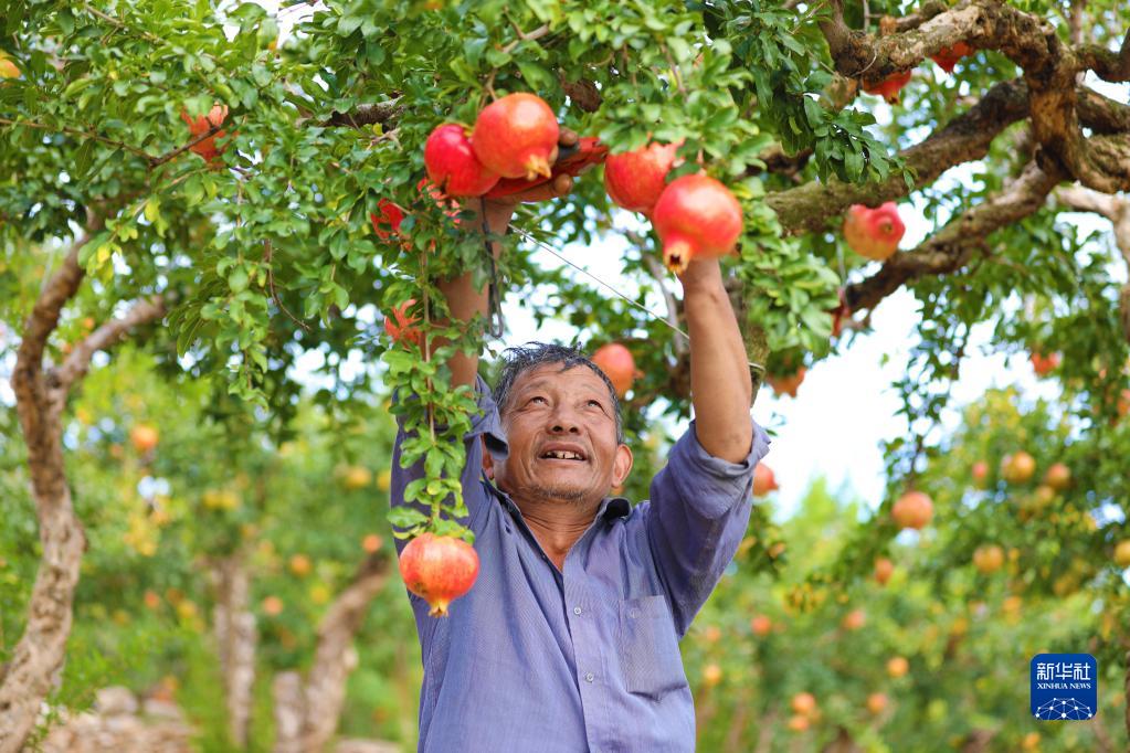 9月19日,山東省棗莊市嶧城區(qū)榴園鎮(zhèn),“60后”果農(nóng)趙夫忠在采摘石榴。趙夫忠從事石榴種植近20年,最近他種植的石榴再次迎來(lái)豐收。