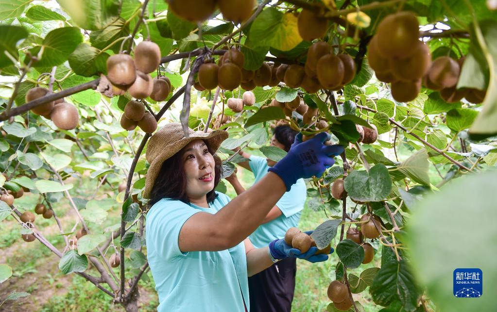 9月18日,在河南洛陽市孟津區朝陽鎮南陳村琪琪種植專業合作社獼猴桃生產基地,“70后”姚曉軍在采收獼猴桃。姚曉軍在2014年返鄉創業,開展獼猴桃和梨等特色產業種植,并成立專業合作社。眼下,她種植的近200畝獼猴桃優良品種迎來成熟豐收期。