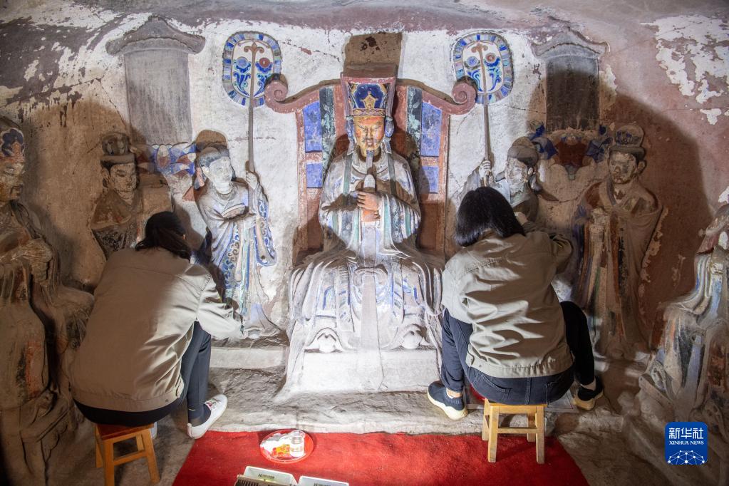 9月22日,大足石刻研究院保護工程中心的工作人員對舒成巖摩崖造像進行本體修復。