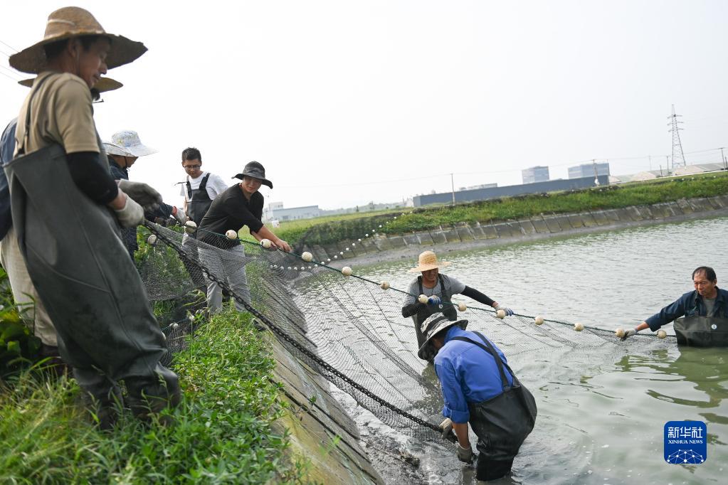 近日,浙江省湖州市吳興區(qū)八里店鎮(zhèn)豐盛灣水產(chǎn)養(yǎng)殖基地迎來沼蝦收獲季,工人們在蝦塘中圍網(wǎng)、捕獲、分揀、裝車,展現(xiàn)出一幅具有江南水鄉(xiāng)特色的豐收圖景。