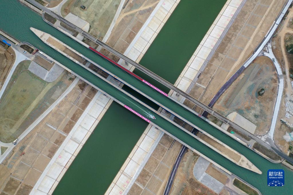 近日,由中鐵四局參建的引江濟(jì)淮淠河總干渠渡槽通航。從空中俯瞰,淠河總干渠從引江濟(jì)淮運(yùn)河上凌空而過,呈現(xiàn)出河上有河的“水上立交”景象。據(jù)了解,淠河總干渠比引江濟(jì)淮航道高出30多米,通過架設(shè)渡槽,淠河水從引江濟(jì)淮運(yùn)河“跨過”,形成一座河上有河可通水行船的“水橋”。