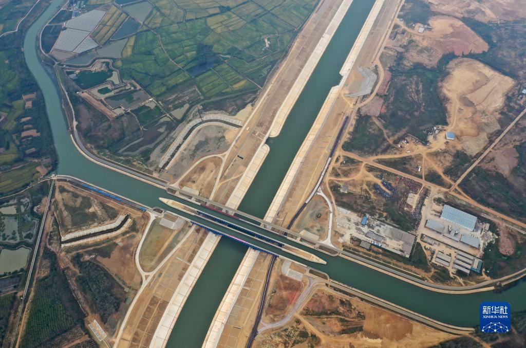 新華全媒+丨河上有河!無人機帶你鳥瞰世界單跨最大“水上立交”