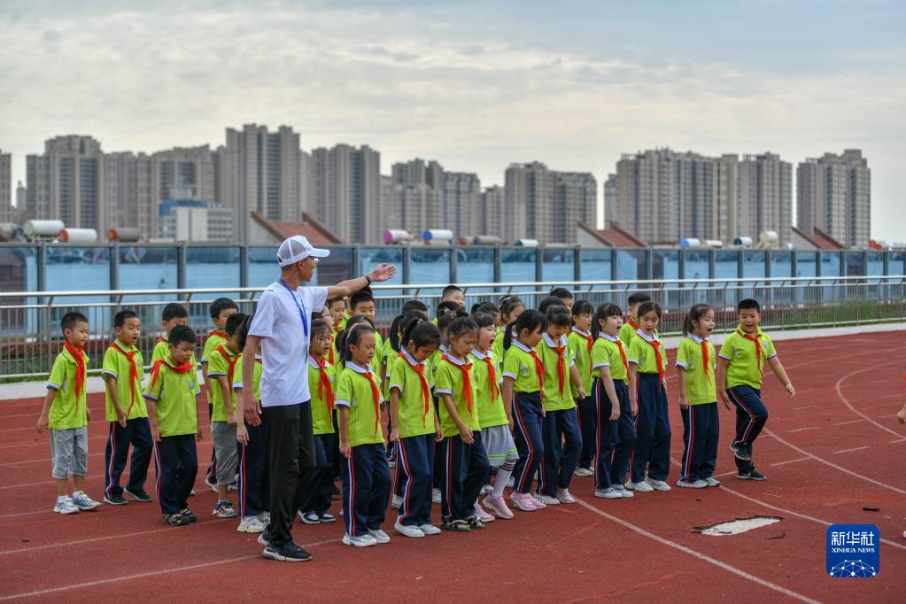 9月20日,齊河縣第六小學學生在空中運動場上體育課。這所地處鬧市的學校將地下停車、地上教學、運動場地分層穿插布局巧妙融合,節地率達到54%。