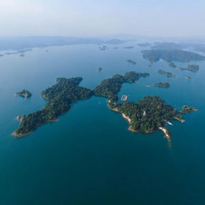 萬綠湖建于1958年,又名新豐江水庫,位于廣東省河源市東源縣境內,因湖水常綠得名,水域面積達370平方公里,水質優良。