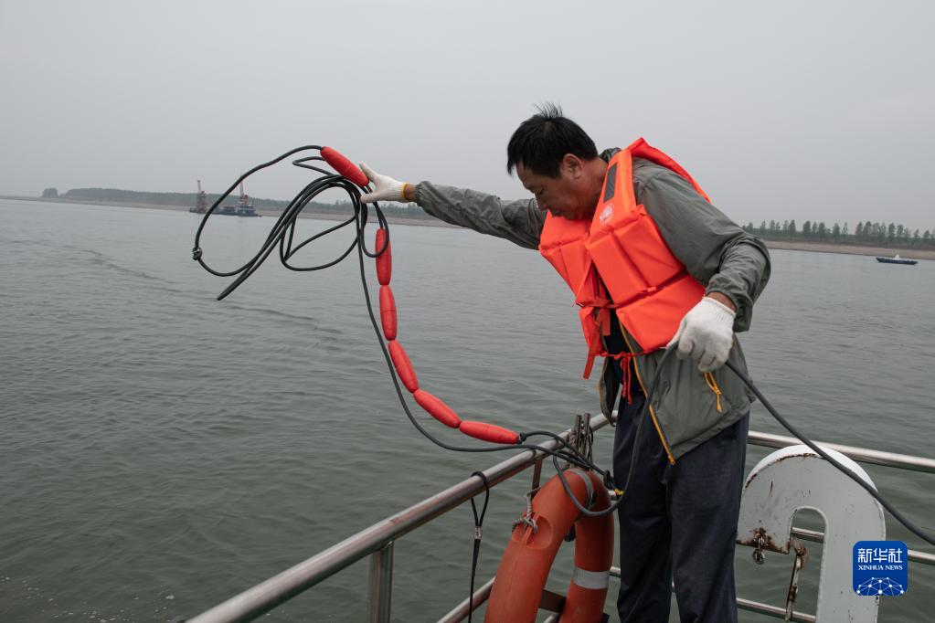 9月23日,科考人員在湖北石首水域通過微型聲信號記錄儀進行探測工作。