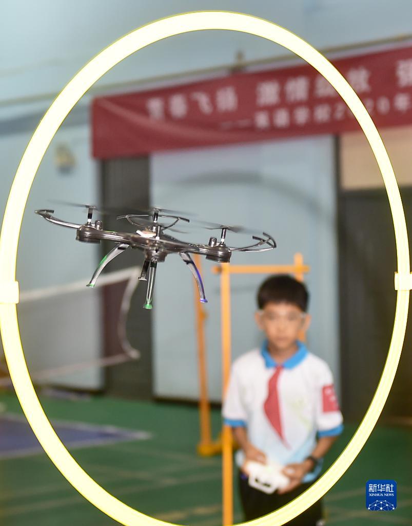 9月17日,學(xué)生在河南洛陽市澗西區(qū)第二屆中小學(xué)科創(chuàng)節(jié)上參加“回旋飛行”項(xiàng)目。2022年全國科普日活動(dòng)期間,各地開展精彩紛呈的科普活動(dòng),讓孩子們感受科技魅力。