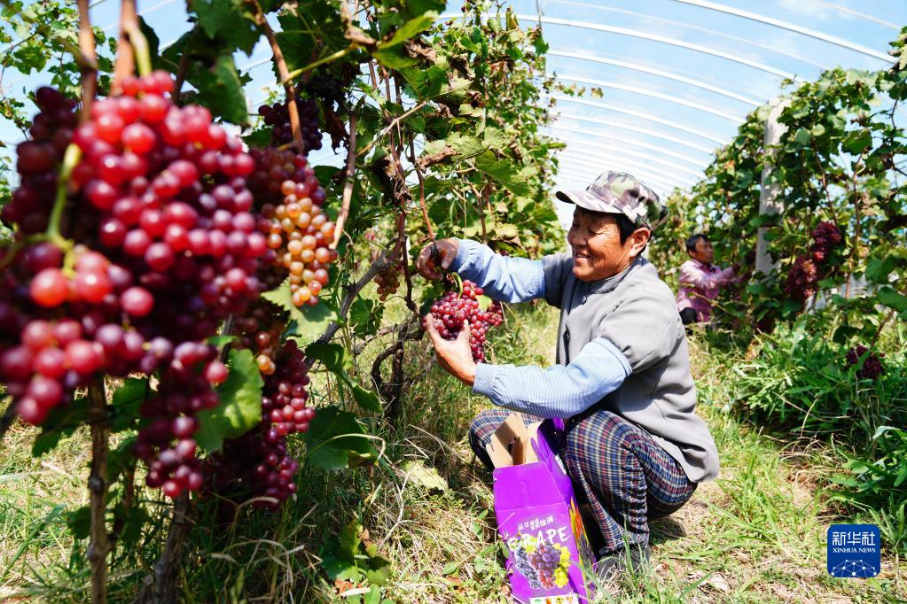 9月24日,在惠民縣胡集鎮(zhèn)惠臺葡萄專業(yè)合作社,村民在采摘葡萄。