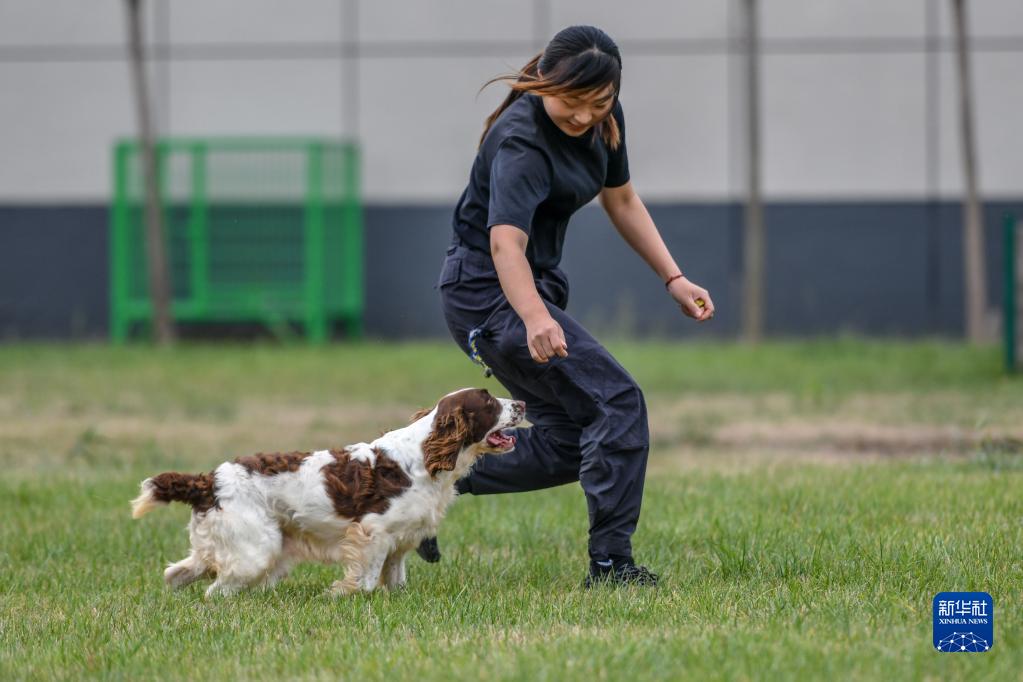 9月20日,訓導員許紋紋帶領搜索犬“巧克力”訓練。